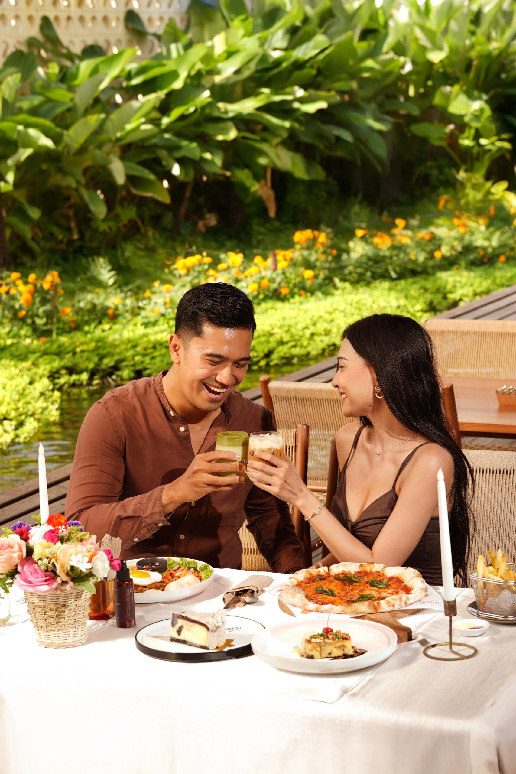 Nikmati beragam menu lezat dengan harga terjangkau di tengah taman bernuansa tropis yang asri dan romantis.
